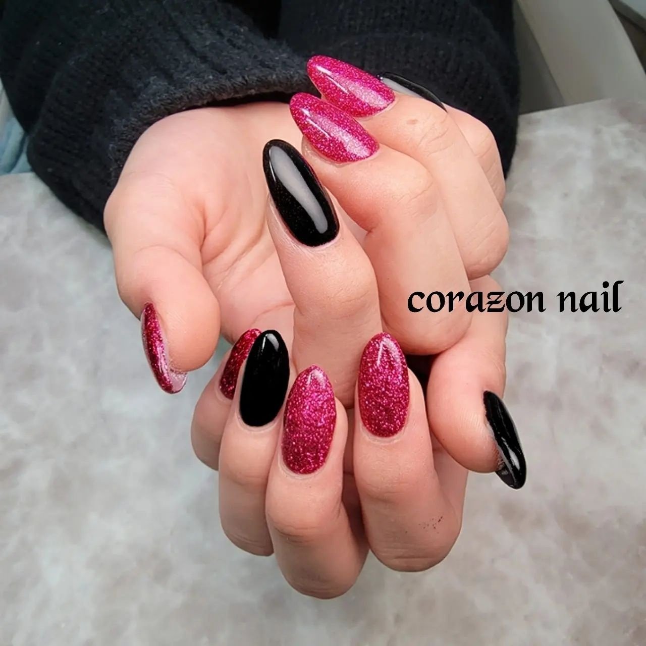 黒 ピンク ネイル シンプル